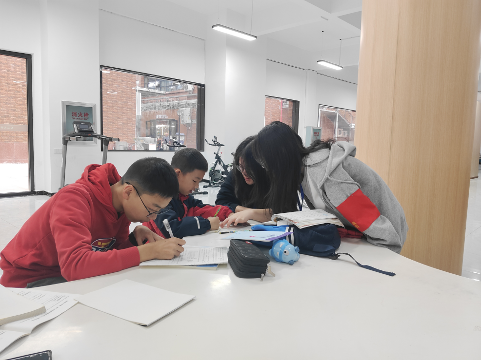 活动当日,志愿者团队早早抵达辅导班现场,以饱满的热情与孩子们亲切互动,并准备出整洁有序的学习环境。随后,志愿者们依据首次分组情况,迅速与各自负责的孩子对接,展开一对一辅导。