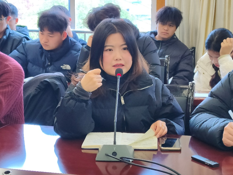 团总支副书记肖阳锋与学生会主席王千千也分别对组织内部整体工作进行了总结。肖阳锋从思想建设、优化管理、锤炼团队、活动举办以及反思不足五个方面进行了工作汇报,并明确表示后续将锚定“保‘五四红旗团总支’称号,争‘五四红旗团总支标兵’称号”的目标,以强化团组织示范引领作用,提升学生干部队伍建设为工作准绳,确保团总支工作的高质量持续发展。