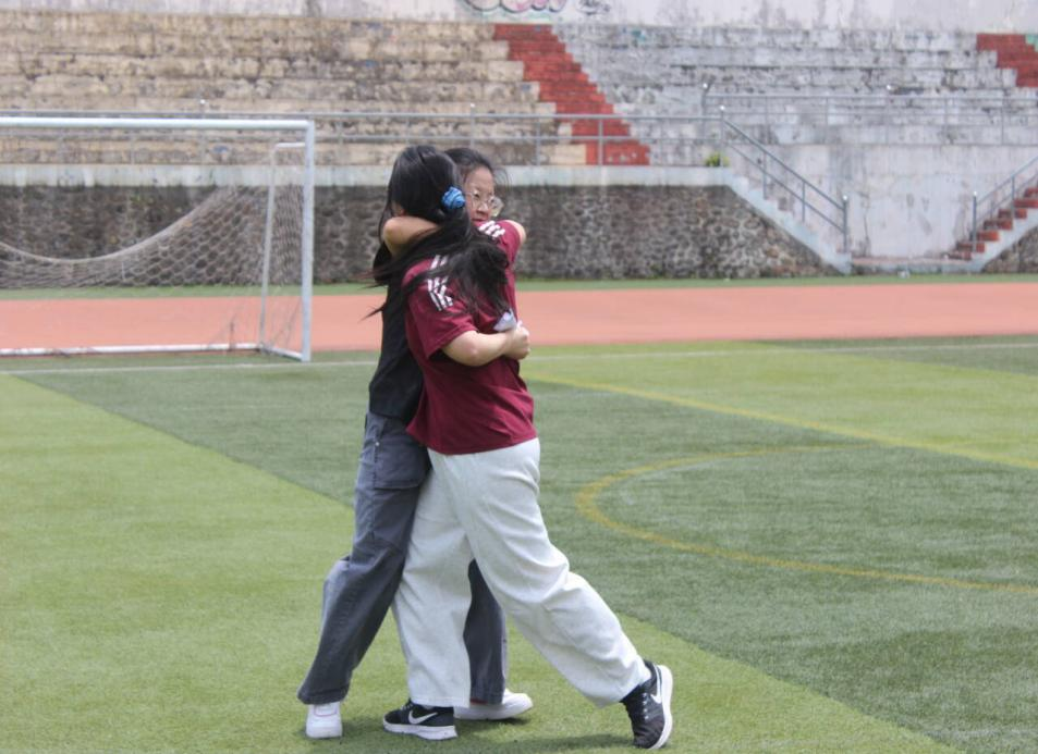 同期开展的“嗨玩撕名牌派对”将活动氛围推向高潮。480名同学自由组队,组成60支队伍展开激烈角逐。比赛分五轮进行,各队在不同赛程中遵循规则,斗智斗勇。选手们在赛场上灵活穿梭、巧妙周旋,既要小心防范对手的“突袭”,又要瞅准时机撕下对方名牌。赛场边,工作人员认真负责,确保活动安全有序开展。