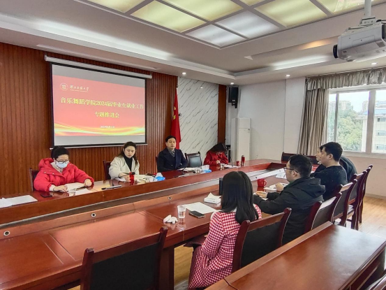 为推进2024届毕业生就业工作,3月14日,音乐舞蹈学院2024届毕业生就业工作专题推进会在学院四楼会议室召开,学院领导班子成员、全体辅导员、全体毕业班班主任参加会议。