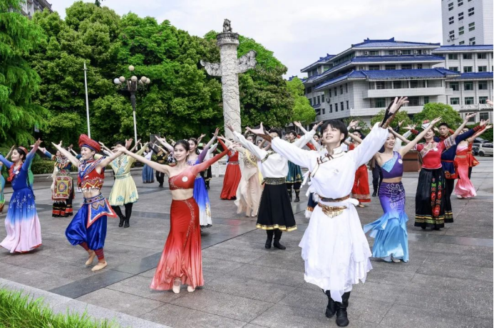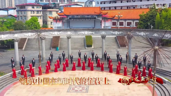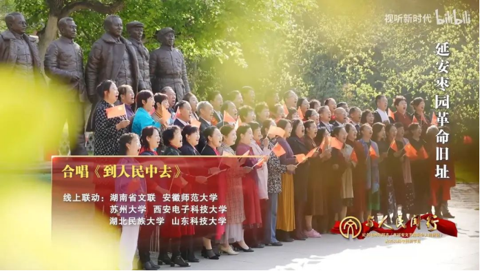 在毛泽东同志《在延安文艺座谈会上的讲话》发表80周年之际,中国文联、中国文联文艺志愿服务中心联合举办了“与人民同行”——纪念毛泽东同志《在延安文艺座谈会上的讲话》发表80周年特别节目”。特别节目充分发挥中国文联的组织优势和专业优势,联动各级文联、各艺术门类的文艺工作者,线上线下参与表演,采取实景拍摄与虚拟影像相结合的手段,通过歌舞、合唱、朗诵、曲艺、短片等多种形式,以天为幕布、以地为舞台,让广大人民群众靠近舞台中央,成为文艺主角,共享文艺成果,同时联动全国各地文艺工作者齐唱共舞,在激动人心的歌声与欢快激烈的舞蹈中,凝聚奋进新征程的精神力量。
