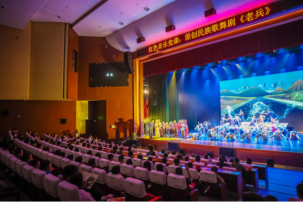 作为红色音乐党课的《老兵》立足党史学习教育,深耕张富清老英雄的英雄事迹,紧密结合恩施地方特色,打造了党史教育的鲜活教材。第一幕讲述了1959年来凤遭遇大旱,张富清深入灾区组织群众抗旱。陕西老家发来电报,告知母亲病危,要他立马回家,但在抗旱关键时期,他实在无法抽身。而等到抗旱成功,母亲病逝的噩耗传来,一场欢庆的摆手舞顷刻变成了《撒叶儿嗬》……不少学员潸然泪下,感动于老英雄张富清身先士卒、舍小家为大家的奉献精神。第三幕中,为解决当地群众行路难,张富清主动来到最苦寒的高洞片区带领群众开山修路,历经120多天日夜苦战,终于圆了山区群众世代梦想。离休后的一天,那只形影不离的水壶不慎碰落在地,这使他又想起了那些牺牲的战友们……”