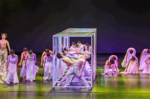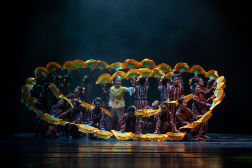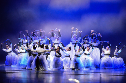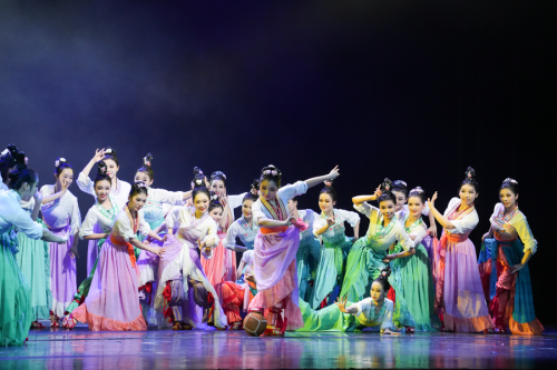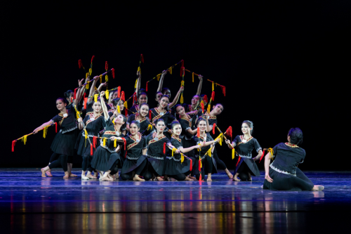 本次展演共分生、熙、欣、繁四幕。“生”篇,舞者着洁白的舞衣,用丰富的肢体语言将所思所感流露于动作中,尽情展现生命之美,拉开展演序幕;“熙”篇,土家族组合展示土家族传统艺术“打莲湘”,舞者舞步轻快,边跳跃边抖动莲湘,用其打击在肩、手臂、腿等部位,发出清脆悦耳的铃响声,充分调动现场氛围。蒙古族组合在富有节奏感的鼓点声中,舞者抖动胸脯、扭动双臂,动作简洁明快,用力量感十足的肢体语言展现民族豪迈气概和刚劲有力之美,气氛和谐而热烈。现代舞组合,舞者红裙配西装,热情昂扬富有力量,舞蹈自信、开朗、具有表现力,用铿锵有力的步伐踏出现代青年人的活力与朝气,用新颖的舞台设计为观众带来视觉盛宴;“欣”篇,《冰凌花》采用传统东北秧歌元素,描绘了破冰雪而出的冰凌花奋力绽放的情景。大量扇技的展现配合唢呐吹奏,让作品的情感起伏跌宕,用冰凌花的坚韧展现黑土地上人们顽强不屈的性格和无所畏惧的精神。《阳光下的麦盖提》以维吾尔族的“刀郎”为主要动作语汇,构建出“刀郎”与山东“鼓子秧歌”对舞的情景。舞者身着维吾尔族传统服饰,动作粗犷大方、沉稳矫健,在刀郎舞节奏中不断变换空间形态,展现出刀郎舞这一优秀传统艺术形式的独特魅力。《妹娃过河》以女子群舞的形式将利川民歌《龙船调》中“妹娃要过河”这一情节展开呈现,妹娃搭起过河的桥,跨过河流水,跨向承载理想的远方,借助水的多重象征隐喻妹娃过河是追逐理想的远行,是自我价值的追寻,更是生命信仰的归途;“繁”篇,从一二三开始到三二一结束,从五湖四海相聚到各奔人生东西,全体演职人员一次次谢幕道别,一次次高歌“我的未来式由我做主”,新的人生之旅将从此刻扬帆起航(审核:胡自爱)。