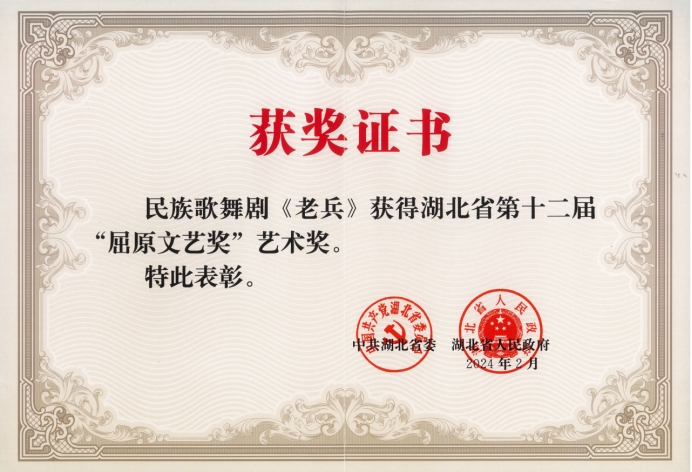 36365官网原创民族歌舞剧《老兵》喜获湖北省第十二届“屈原文艺奖”艺术奖
