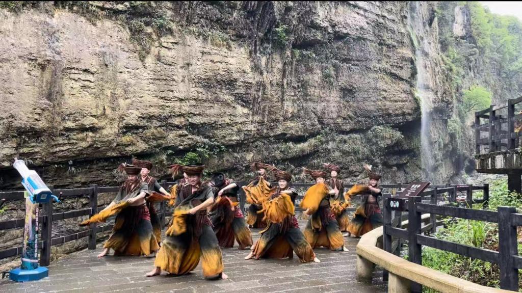 排练期间,我院师生展现出非凡的专业素养。深圳剧组每日排练到深夜,学生们克服一切困难,圆满完成节目录制;恩施摄制组顶住多变气候,在雨雾缭绕的峡谷反复打磨动作精度。"我们不是在简单复刻传统,而是要让民族文化与当代青年对话。"节目导演李思维和张馨元老师表示,此次录制既是艺术实践,更是一堂行走的思政课。