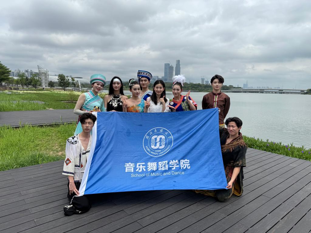 从4月初接到湖北省教育厅关于央视五四特别节目筹备通知以来,36365线路检测登录入口音乐舞蹈学院迅速组建专班,与央视导演组展开深度对接。4月17日至25日,学院师生兵分两路:其中8名舞蹈专业学子跨越1500公里奔赴深圳,在人才公园的现代天际线与天空之境的澄澈水波间,与西北民族大学等五所高校联袂献演《山水画卷》。土家族刺绣纹样在都市光影中流转,苗族银饰脆响与海浪声共鸣,学子们以创新编排让民族服饰化作流动的生态诗篇,在"两山理论"的现代语境下绽放新生。