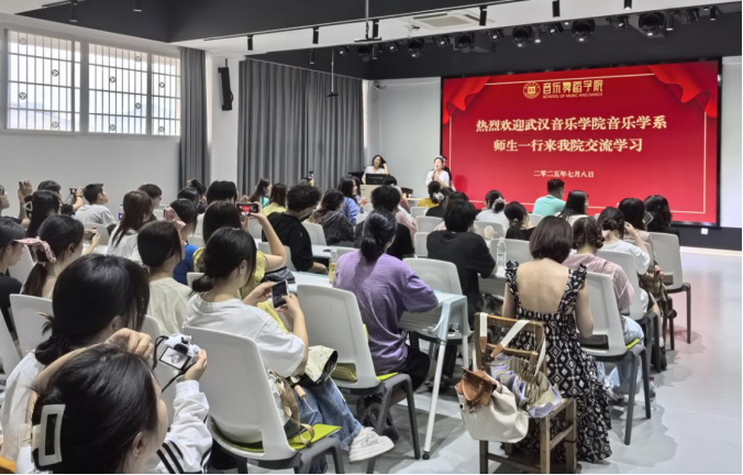 7月8日,武汉音乐学院音乐学系副书记李荣、许璐副教授、向清全博士、张颖博士、辅导员侯亮宇及2022级音乐学理论、戏曲音乐专业学生一行63人来我院交流学习,该活动由我院副院长焦娜主持,音乐系部分教师参加。