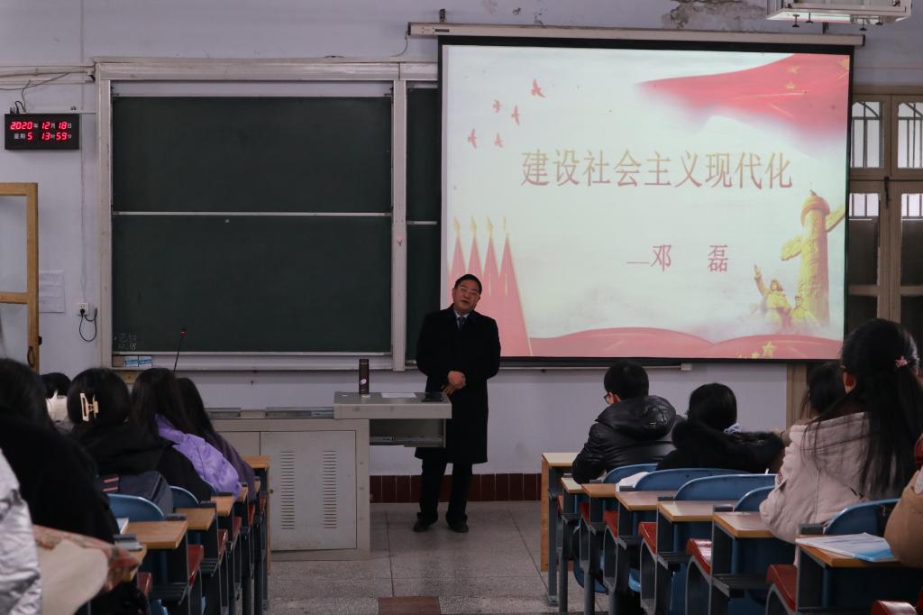 高校思想政治理论课是对大学生进行思想政治教育的主渠道,是落实立德树人根本任务的关键课程,其中《形势与政策》课是高校思想政治理论课和“课程思政”的关键课程、核心课程。为进一步深入学习贯彻全国高校思想政治工作会议精神,全面落实中央、省委《关于加强和改进新形势下高校思想政治工作的实施意见》精神,12月17日至23日,学校党委书记吴建清、党委副书记汪兴平、纪委书记田景福、副校长邓磊、祝建波、总会计师余来先后走进教室,为2020级本科生讲授形势与政策课程。