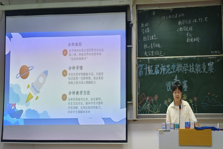 4月26日,说课比赛分初中组与高中组两个赛道分别在德智楼9B208、210教室进行。我院教师张蔚玲、姜素凤、陈文俊、常玉受邀出席并担任比赛评委。参赛选手从教材分析、教学方法、课堂设计、板书设计、教学反思等方面进行说课。经过激烈角逐,尹双双(初中组),孙航(高中组)、闫俊(高中组)三人荣获一等奖。