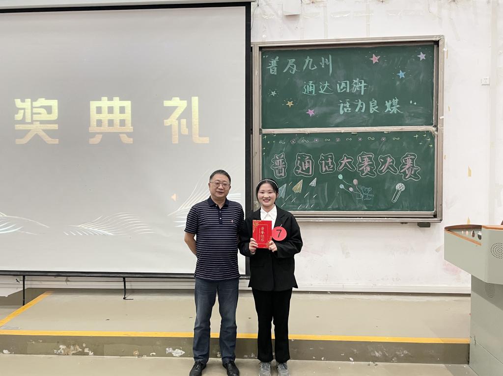 经过初赛的激烈角逐,共有9名选手进入决赛。比赛分为“自我介绍”“绕口令”“自我展示”“命题自由表达”四个环节。最终,七号选手易秋波以其流畅的命题说话、优秀的口语表达能力拔得头筹,夺得桂冠。