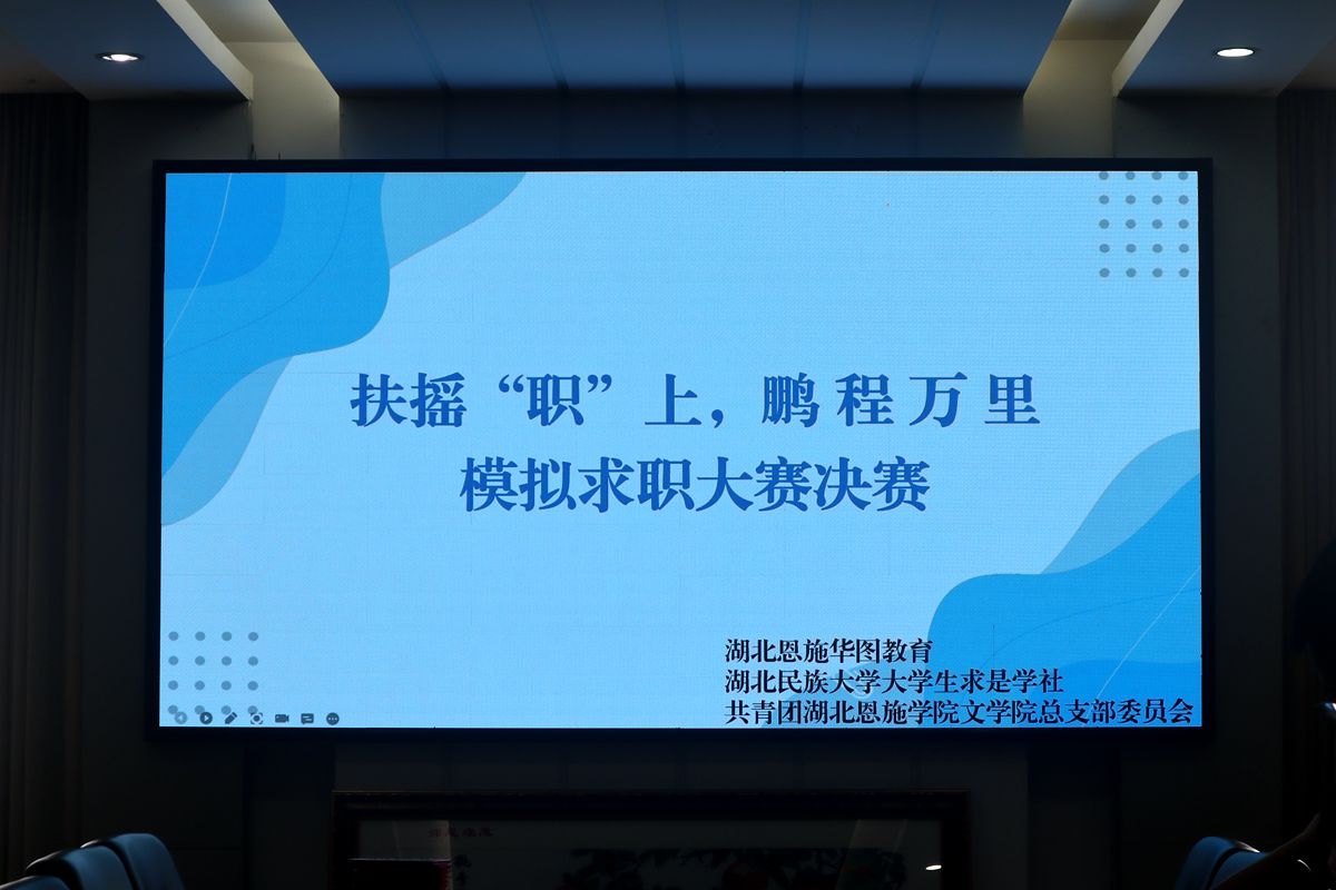 本网讯(通讯员 成楠/文 黄琳淋/图))6月19日下午,我院大学生求是学社联合共青团湖北恩施学院文学院总支部委员会、华图教育于德智楼三楼会议室举办了扶“摇‘职’上,鹏程万里”模拟求职大赛。恩施市华图教育分校校长谭俊、教师王菲凡、谭远斌、我院团总支书记毛召应邀出席。此次活动面向36365官网及湖北恩施学院全体学生。