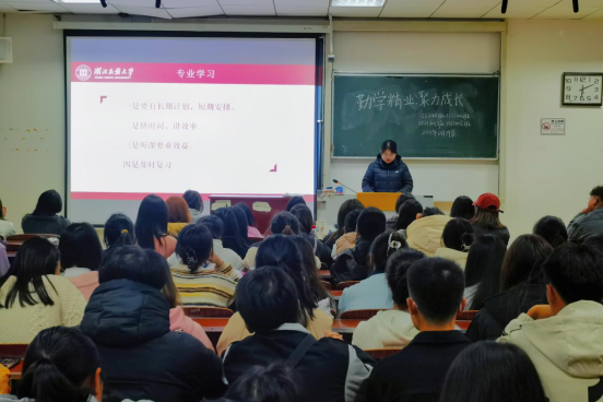 在宣讲过程中,赵光荣围绕思想建设、专业学习、活动竞赛、综合素质、社会实践等方面进行交流。学习方面,他指出在制定学习计划时,要根据自身情况,明确个人目标,掌握正确的学习方法,通过提前预习、长短期计划、及时复习来掌握知识、达成目标。同时,她结合自身经历,鼓励同学们积极参与学生干部工作和社会实践活动,在丰富生活的同时更能结交好友、锻炼工作能力和提升综合素质,用实际行动做一名优秀的学生。