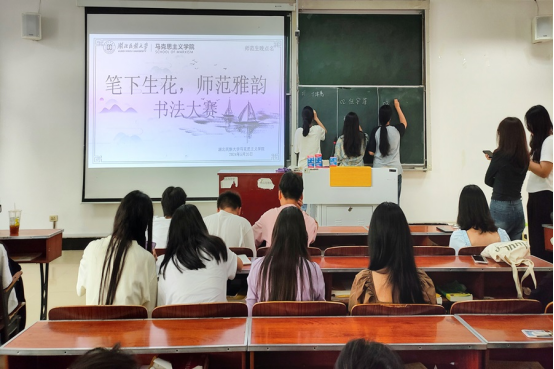 为强化师范生技能培养,提高师范生综合素质,5月26日,我院在德智楼9B108、9B210教室举办2023级师范生技能提升主题晚点系列活动之“笔下生花 师范雅韵”书法比赛活动,2023级全体学生参加此次活动。