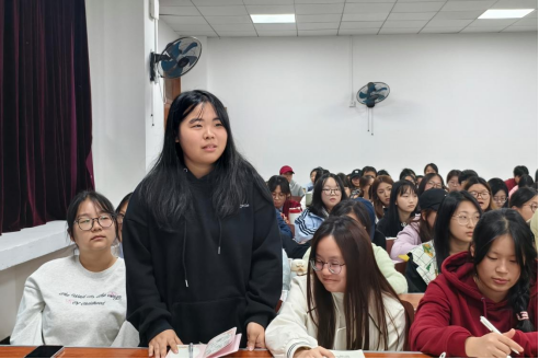赵光荣以“等风来 不如追风去”为主题,围绕获奖经历、专业学习、社会实践等多个方面分享了自己充实而忙碌的大学生活。首先,她分享了自己获得国家奖学金的历程和感悟,并表示挫折和失败是成长过程中在所难免的,要学会坦然面对挫折,以乐观的心态面对生活,用发展的眼光看待事情,勇敢地面对挑战,不断超越自我。随后,她以自身的学习经历为切入点,阐述了目标设定和时间管理的重要性,分享了如何制定明确的学习目标,如何合理规划时间以及高效地完成各项学习任务。她还鼓励同学们积极参加学生组织和社团以及学科竞赛、志愿服务和社会实践活动,全面提升自身的专业技能和综合素质。最后,她表示追逐梦想的过程就是人生的意义,号召同学们坚守初心,持续奋进,为实现自己的理想而拼搏奋斗。