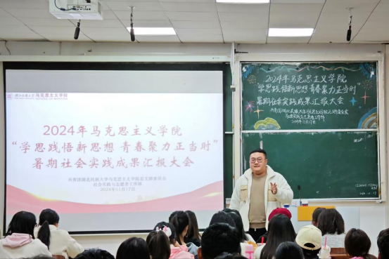 11月17日,我院社会实践与志愿者工作部在德智楼9B208教室举办以“学思践悟新思想 青春聚力正当时”为主题的2024年暑期社会实践成果汇报大会。大一全体学生参与此次活动。