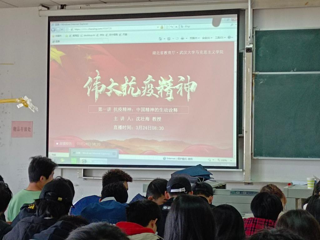 武汉大学党委副书记、马克思主义学院院长沈壮海教授作伟大抗疫精神第一讲《抗疫精神:中国精神的生动诠释》,他从伟大抗议精神由何而来、体现在何处、何以形成、价值何在、如何弘扬五个方面内容深刻阐释了作为中国精神生动诠释的伟大抗疫精神。他号召当代青少年要树立四个自信,在党的领导下,做走在时代前列的奋进者、开拓者、奉献者,以执着的信念、优良的品德、丰富的知识、过硬的本领,使自己成为祖国建设的有用之才、栋梁之材,同全国各族人民一道,担负起历史重任,让抗疫精神放射出更加夺目的时代光芒。