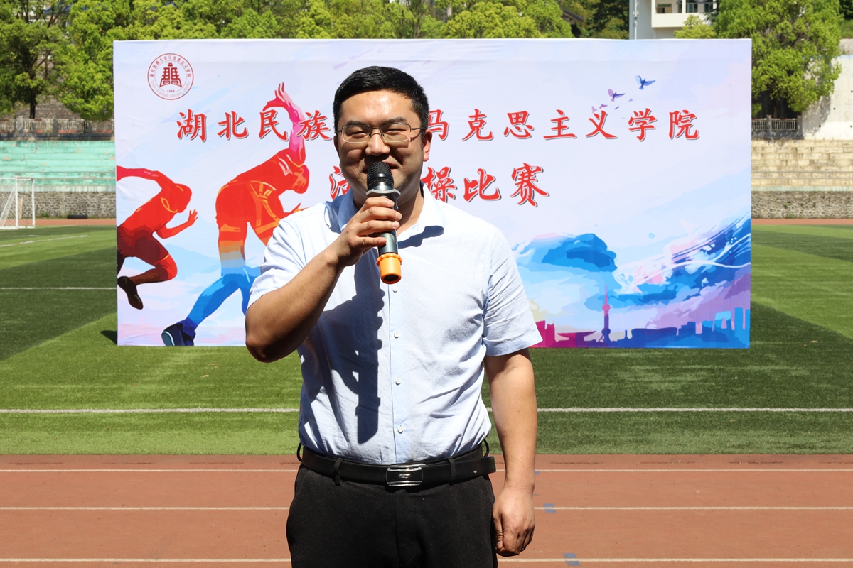 徐杰讲话。他表示马克思主义学院以活力操这一创新的活动形式,生动展现了马院学子的青春精神与活力。他强调,此次活动的成功举办是马克思主义学院在大思政的时代背景下办学理念的成功实践,是学院理论教学与实践教学相结合的成功案例。