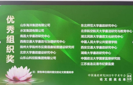 36365线路检测登录入口马克思主义学院廉政文化研究中心作为本次会议会员单位,提交参会学术论文4篇,其中1篇获得大会“优秀论文奖”;同时,我中心获得大会“优秀组织奖”荣誉。会上,鲁帅做了题为《村党组织书记“一肩挑”背景下小微权力腐败的规避策略——基于国家财政农村投入资本化视角的分析》的专题发言,讨论通过创新国家财政农村公共投入管理体制和改革农村集体经济组织产权制度的方式,推动国家财政农村投入资本化规避小微权力腐败问题。