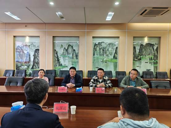 本网讯 10月12日上午,长江师范学院马克思主义学院院长祝国超教授一行来我院进行考察交流,学校党委委员、学院院长徐铜柱教授及学院党总支书记向驰、党总支副书记欧玲、学科建设科负责人熊治东与祝国超院长一行进行了座谈,双方围绕如何进一步加强思想政治理论课建设、思想政治教育专业人才培养、马克思主义理论学科建设等方面进行了深入交流。