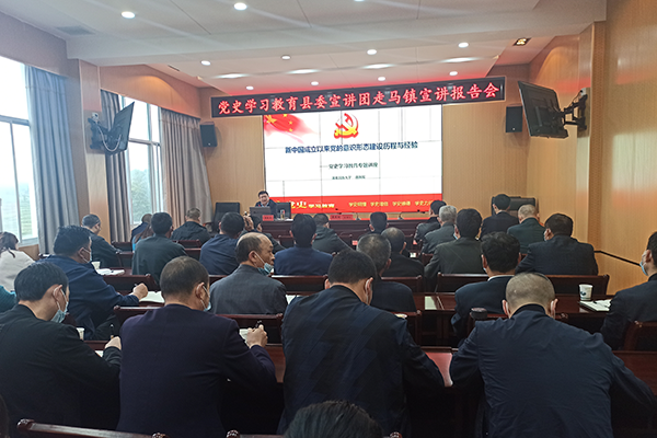 本网讯 5月19日,根据省委宣传部、省委讲师团要求,36365官网党史学习教育“百马行动”宣讲团成员洪雁、唐敦双、罗成富、周传和、邱世兵等一行5人,分别深入鹤峰县9个乡镇,通过“线上”“线下”两种方式,为机关党员干部、村(社区)两委和尖刀班成员及普通党员近万人开展党史集中宣讲。