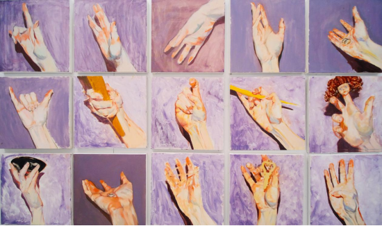 作品简介:用组画这种分镜的方式表达同一只手在不同状态环境下不同的状态与情绪。是一种蒙太奇的手法,将碎片状的不全面的小事物组合成一个完善的,整体的作品。通过画面中的小细节——摊开手给与戒指,竖4根手指的手势,持木棍,食指上顶的洋娃娃玩具等等。表达这只手的主人(我)的经历,我所重视的时刻等。并以此抛砖引玉,引发观众的共鸣。