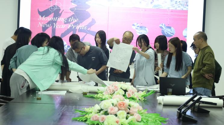 讲座分为两个环节。第一环节由王琳杰先生就杨柳青木版年画的历史、制作年画的工具与工序与图像后面的“中国故事”做了较为详实的解读与阐释:杨柳青木版年画产生于明代,经历几百年的传承,几经盛衰发展至今;其雕刻与彩绘于一体的技艺于分工协作的制作程序成为中国年画的重要代表之一更为重要的是杨柳青木版年画将现实题材与人民美好生活的表达相结合,成为讲好“中国故事”的范例之一。讲座过程中王琳杰先生不仅展示了众多杨柳青木版年画的高清电图像,还展示他制作的年画以及收集的各类原版年画,使师生们更直观而清晰地深入理解了中国木版年画。第二个环节由王琳杰先生带领师生们体验木版年画印制过程。王琳杰先生自己雕刻的木版年画雕版,示范印制技术和程序,师生们积极参与年画印制了《富贵有余(鱼)》《数九图》《鼠(数)你有钱》《莲年有余(鱼)》《蟾宫折桂》等杨柳青木版年画线稿,体验年画制作技艺与文化的魅力。这些作品蕴含着丰富的中国审美和民间智慧,体现了人们对美好生活的向往,以及他们在有限的材料技术条件之下所激发的艺术创造力。整个活动持续到晚上十点多钟。