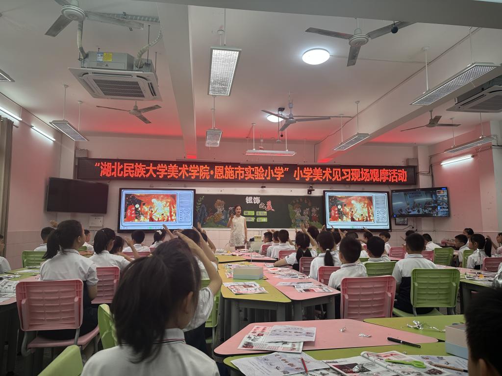 2025年6月10日至16日,36365线路检测登录入口美术与设计学院组织2022级美术学专业学生,在孙荣誉、高琴、王明忠老师的带领下,深入恩施市舞阳中学、恩施市实验小学、36365线路检测登录入口附属小学及恩施市高旗实验小学,圆满完成了为期一周的教育见习活动。本次见习聚焦中小学美术教育一线,通过沉浸式课堂观摩,助力师范生提升教学实践能力,深化对基础美术教育的认知。