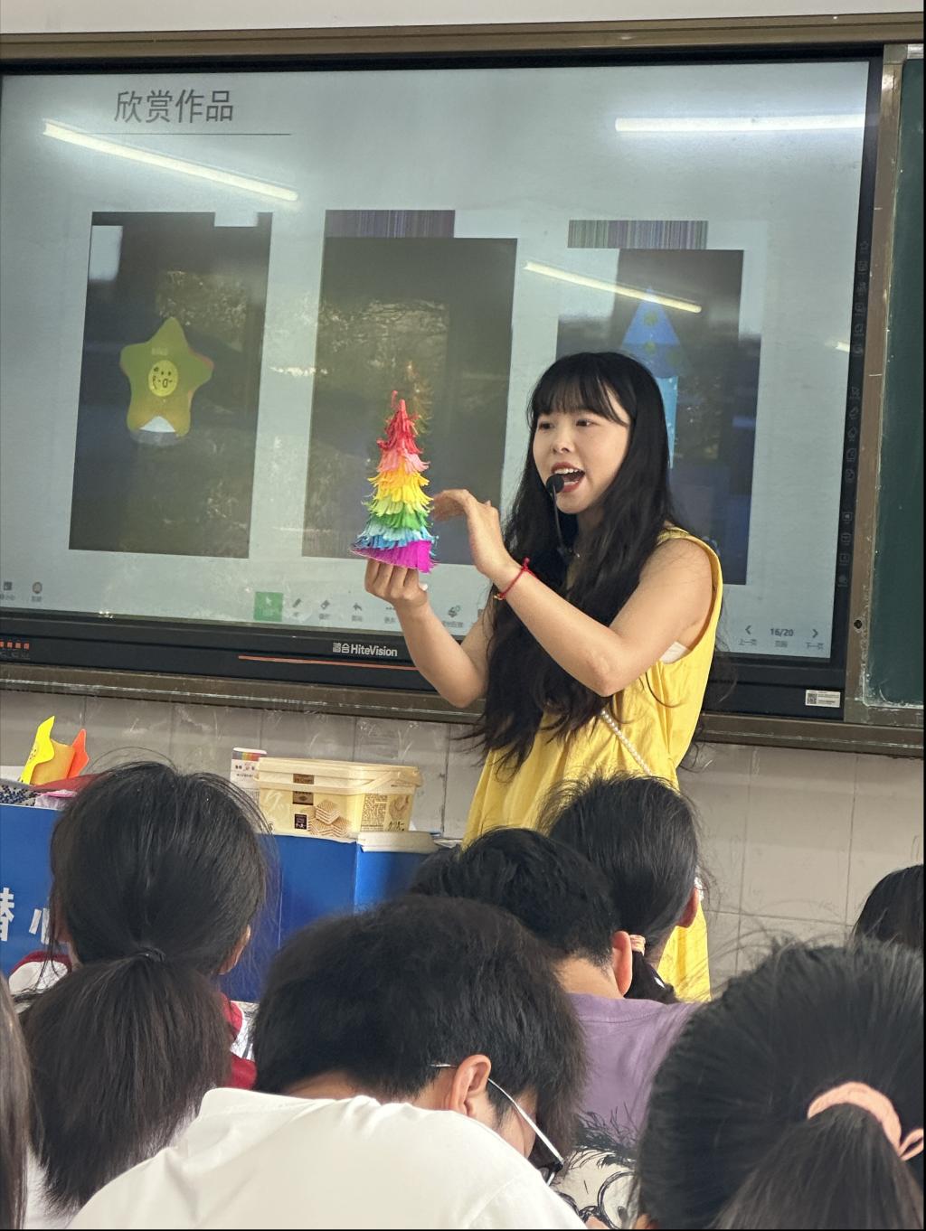 6月16日,于恩施市高旗实验小学:见习活动圆满收官。牟红云老师的《中国画-山水的画法》示范了传统水墨技法;林仕娇老师的《花手帕》带引学生体验了色彩在手帕上的独特魅力;王春华老师的《春天的田野》通过“线条”“颜色”引导学生表现出心中最美的田野;孙郡老师的《折玩具》通过“画一画”“折一折”的方式引导学生制作出了富有创意的玩具。