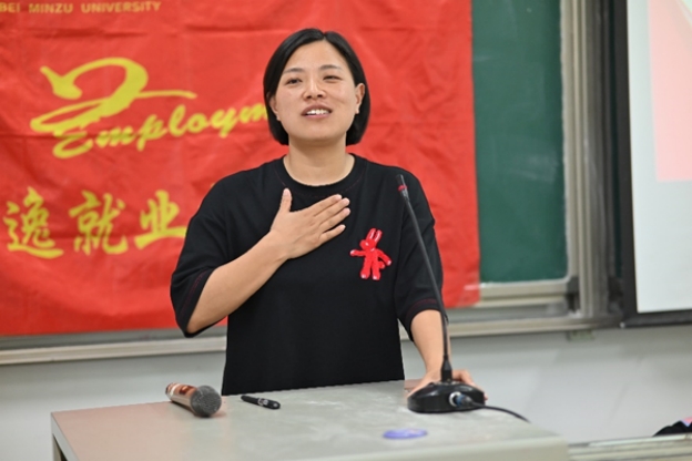 张妮艳副书记讲话,她肯定了团学会、通讯社、心逸就业指导协会所有成员为建设学院做出的努力,并对未来学生干部的工作进行展望。