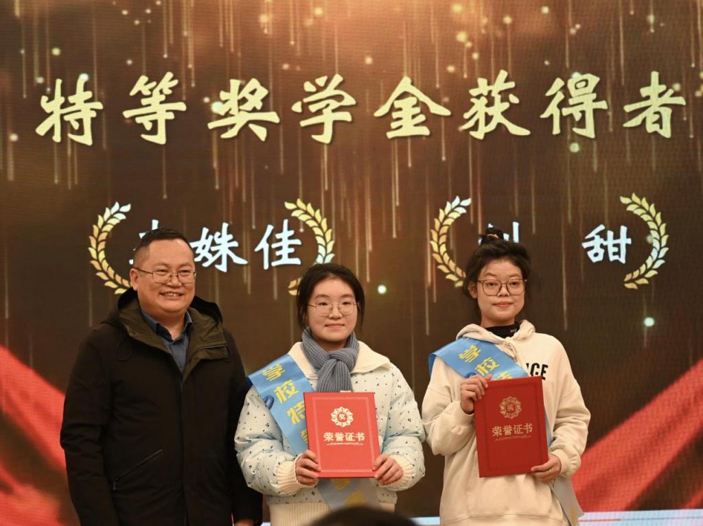 与此同时,国家奖学金获得者、学校特等奖学金获得者、学习进步之星代表、学科竞赛之星以及优秀共青团干部代表、优秀学生干部代表16人纷纷站上领奖台,收获努力换来的荣光。