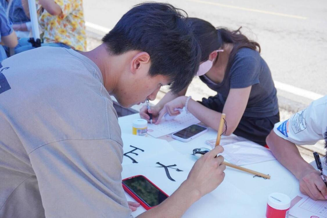 在“看见非遗,国韵传声”展览环节中,工作人员精心展出了西兰卡普、发簪、缠花等多种非物质文化遗产样品,让观众能够近距离感受这些传统文化的魅力;“乐道拾遗,匠心筑遗”体验环节,参与者们热情高涨,他们挥毫泼墨,认真书写,感受书法中蕴含的非遗魅力;“‘工巧殊胜,绽笑风华’共绘‘非遗之画’”环节,参与者们手持画笔,齐心协力为“非遗之画”上色,各种颜色和图案交织在一起,形成了一幅幅充满创意和想象力的“非遗之画”。