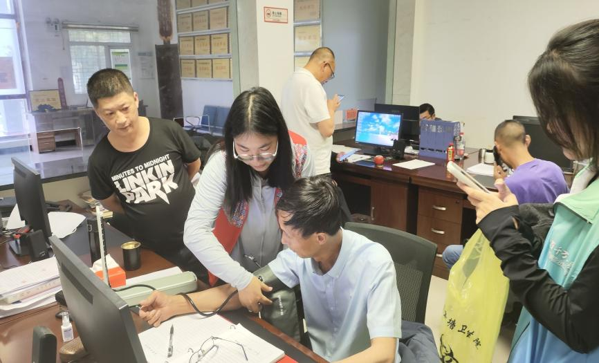 活动伊始,团队成员在新塘乡卫生院分院的支持和指导下,为当地居民和群众提供了血压与血糖的免费检测服务。针对卫生院提供的重点关注人群名单,队员们更是逐一走访,深入各家各户进行测量。这次过程中,他们积极与居民交流,结合测量结果,提供相应的健康建议,用通俗易懂的语言向他们讲解高血压和糖尿病的患病病因、预防方法等重要知识。