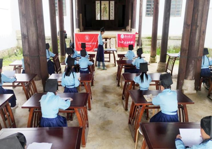实践队还带领孩子们走进省级文物保护建筑——如膏书院,开展经典诵读活动。团队成员选取了《大学》《弟子规》等经典篇目,让孩子们在朗朗书声中,感受汉字的韵律之美,在雕花木窗棂间感悟“修身齐家”的智慧,体会中华优秀传统文化的魅力。