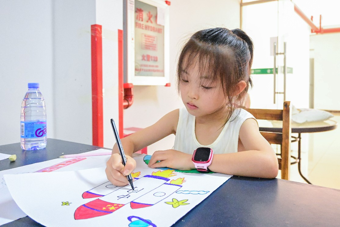 学生绘制航天火箭