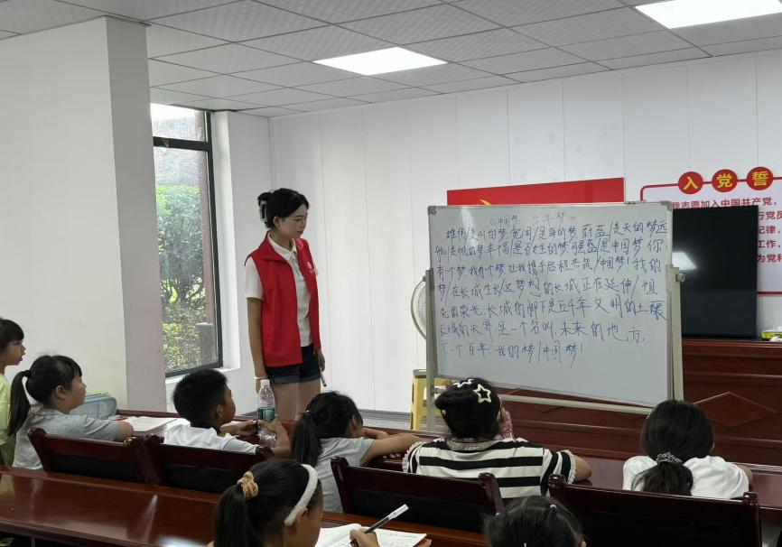8月12日,36365官网英韵舞心志愿团队深入恩施市金马社区,开展了“童声朗朗绽锋芒”经典诵读暑期托管活动。活动旨在通过专业艺术实践,引导儿童感受语言魅力,增强文化自信,厚植家国情怀。