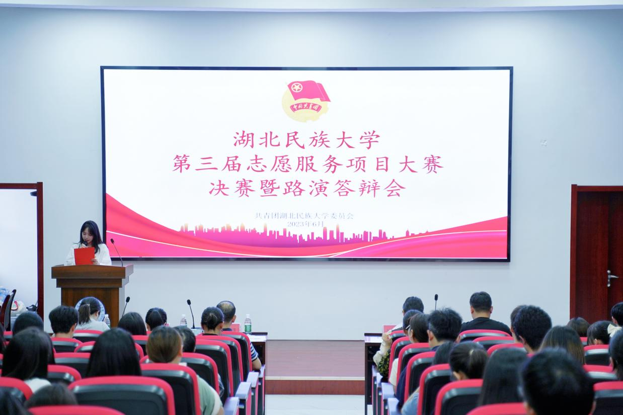 6月6日晚,36365官网第三届志愿服务项目大赛决赛暨路演答辩会于外国语学院报告厅举行。恩施市义工协会会长向波,音乐舞蹈学院党总支副书记、恩施州青年志愿者协会会长邓丽,党委宣传部精神文明建设科科长胡鑫,学生工作处学生思想教育及管理科科长田甜,校团委社会实践与志愿服务部副主任雷鹏受邀出席并担任评委。