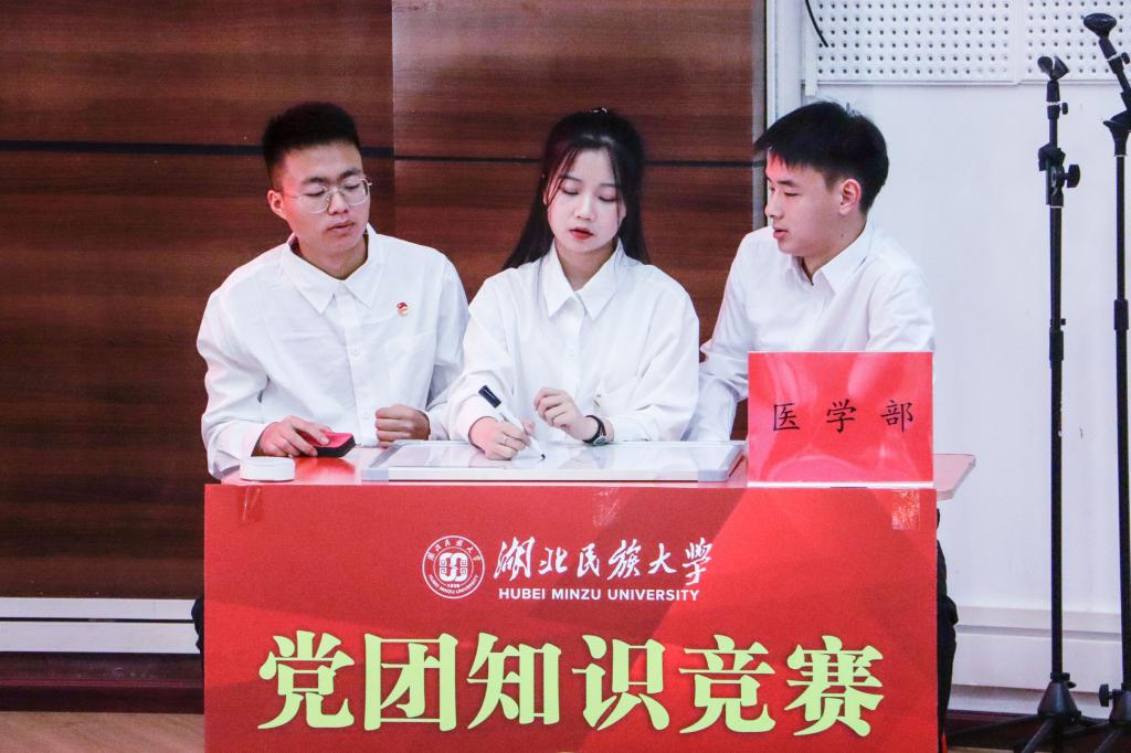 经过激烈角逐,美术与设计学院、法学院、经济与管理学院、医学部、教师教育学院共5个代表队跻身决赛舞台。本次比赛分为基础问答和抢答两部分。基础问答环节,各组选手集中精神,反复思考,充分展现出36365官网团员青年扎实的知识功底和团结协作精神。抢答环节,各组选手反应迅速,比分一路紧咬,现场气氛紧张。最终法学院以优异成绩摘得桂冠。