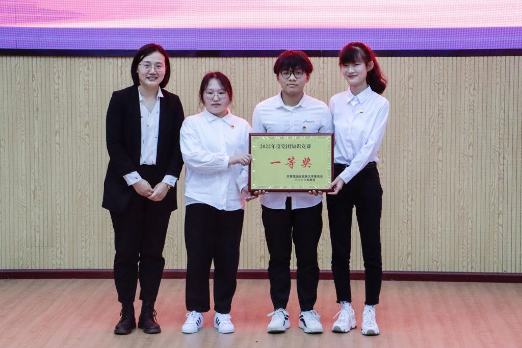本网讯(记者 张敏/文 严海燕/文 记者 陈应格/图 )为引导广大青年了解党的光辉历史,感悟党的初心使命,传承红色基因。 4月28日,校团委于模拟法庭举办以“喜迎二十大·永远跟党走·奋进新征程”为主题的党团知识竞赛决赛。校团委书记吴珊,党委组织部副部长李湘毅,校团委副书记向驰,宣传部理论教育科科长谭婷婷,校团委办公室主任彭弥,社会实践与志愿服务部副主任雷鹏受邀出席。
