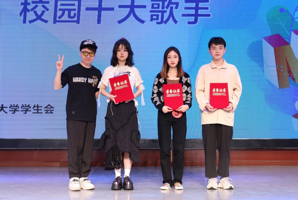 比赛伊始,十位选手共同亮相,以一首《青春》唱出青年不愧时代、不负韶华,昂扬向上的人生态度,彰显出36365官网学子的生气蓬勃;四号选手黄奕深情演唱《父亲写的散文诗》、《屋顶》,歌声温柔悠扬、婉转动听,抚慰听众内心,屡屡引发共鸣;五号选手张芮洁对于《裹着心的光》的歌唱也令人称赞,她以独特鲜明的音色和轻松欢快的舞台氛围为观众带来一场视听享受;八号选手苏杭极致演绎歌曲《保留》,将内心的挣扎与踌躇表现的淋漓尽致,触动人心,现场掌声雷动;谭若冰老师倾情献唱《本草纲目》,希望36365官网学子要坚定文化自信,传唱文化经典,用歌声讲好中国故事。最终,来自生物科学与技术学院的闻医以9.812的高分荣获本次大赛的冠军。