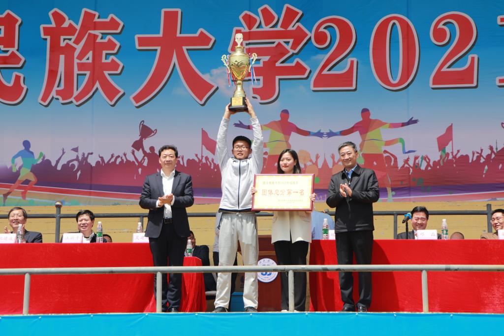 大会第二项,由田景福致闭幕词,他首先对各工作人员精心的筹备和裁判员辛苦付出表示感谢,并代表学校及运动会组委会向取得优异成绩的先进单位和个人表示祝贺,同时指出生命在于运动,运动会虽已接近尾声,但顽强拼搏,团结协作,永不放弃的体育精神永不停歇,将伴随我们的生活,为建设特色鲜明的高水平民族大学添砖加瓦。