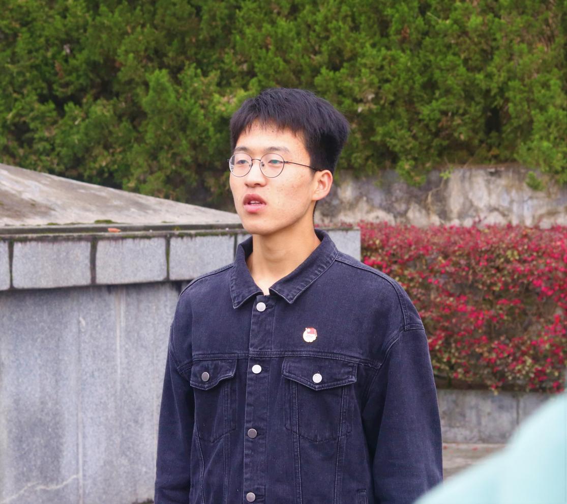 来自经济与管理学院的大一同学陈瑜康,现国旗护卫队预备队员的他从烈士们的英勇事迹出发,结合祖国波澜壮阔的历史,追忆了无数革命烈士为了中国人民的解放奉献了自己宝贵的生命的伟大功勋事业,从个人与国家方面讲述着他对革命先烈的理解。言语中无不表现着他对烈士们发自肺腑地敬佩之意。