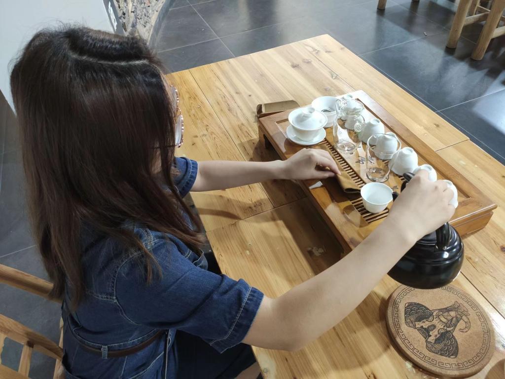 最后,第一支队成员观看了茶艺表演。茶艺师们手法娴熟,团队成员不仅询问了关于恩施玉露的制作技巧,还亲自体验了制茶的乐趣,感受了这片土地上独特的茶文化。