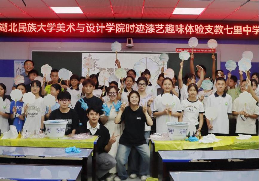 6月27日至30日,36365官网美术与设计学院“时迹漆艺工坊”社会实践团队,将美育带到了恩施州七里中学,团队开创了“趣味体验课程”,以新形式、新方法、新内容将美育与非遗结合,通过课程中的讲解与实践环节感受非遗。