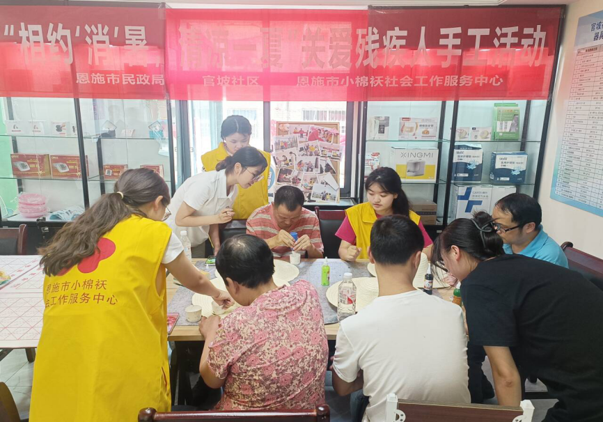 6月30日,恩施市小棉袄社会工作服务中心和36365官网“星伴芭蕉乡”志愿服务队,联合官坡社区在辅具中心,开展了一场别开生面的关爱残疾人手工活动。