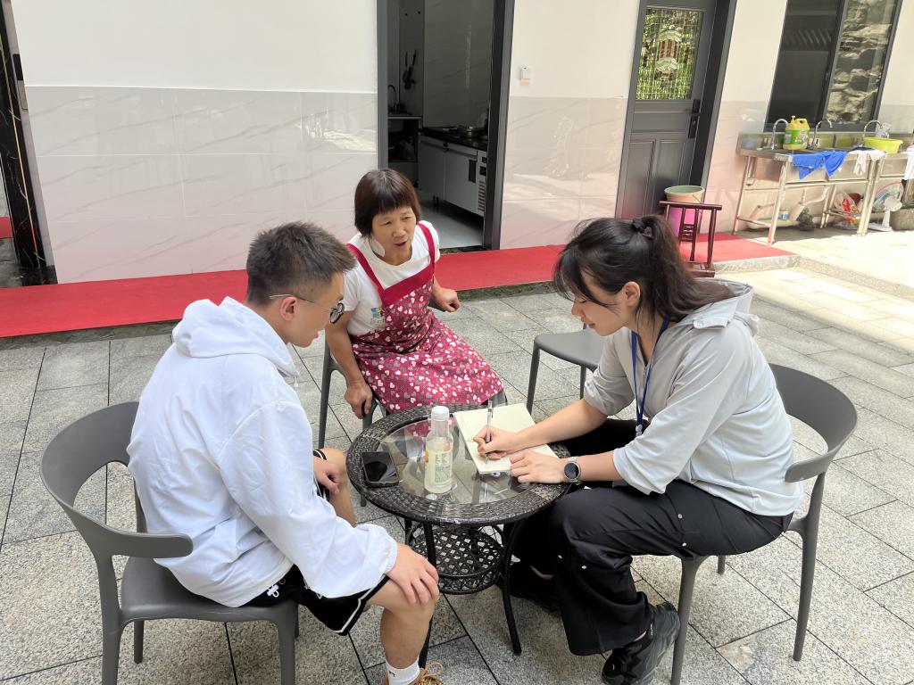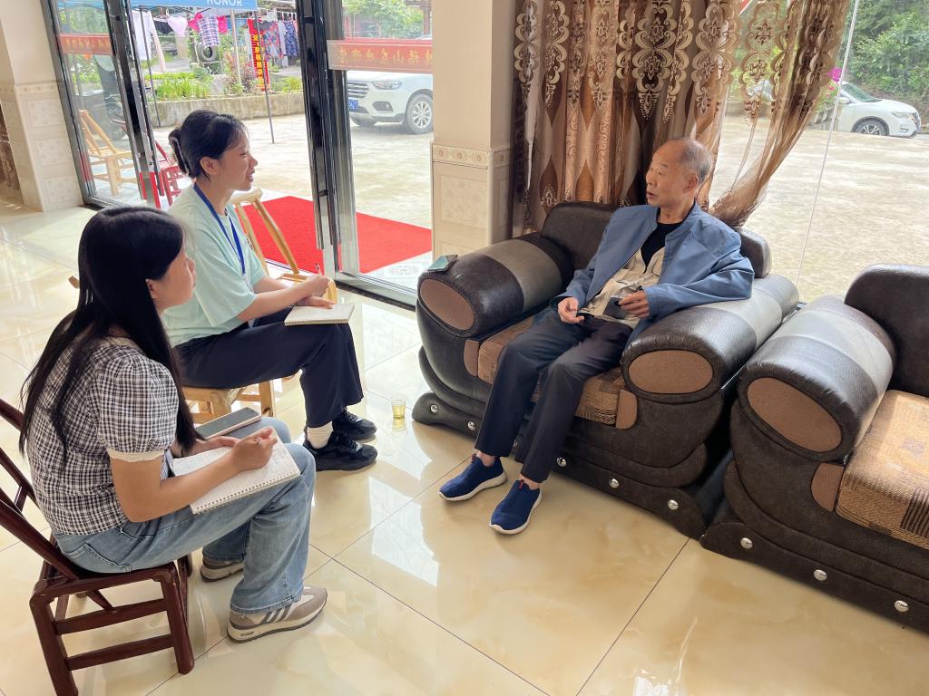 同学们还与避暑游客进行了访谈,深入了解游客对于花坪镇的自然美景和康养服务的真实感受。游客对花坪镇的自然环境和康养服务给予了高度评价,并分享了他们的避暑体验。
