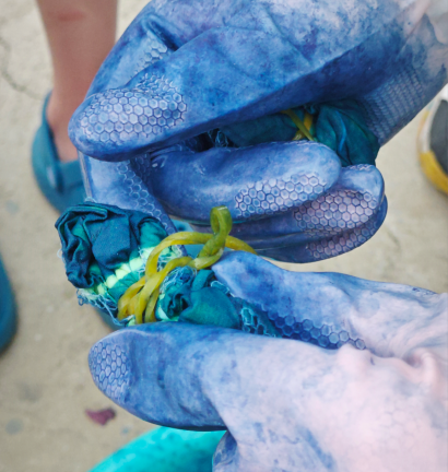 在志愿者的引导下,孩子们纷纷动手尝试起来。他们或独自创作,或与小伙伴合作完成作品。随着染料的渗透和布料的展开,一幅幅图案各异的扎染作品逐渐呈现在大家眼前。孩子们看着自己的作品,脸上洋溢着满足与自豪的笑容。