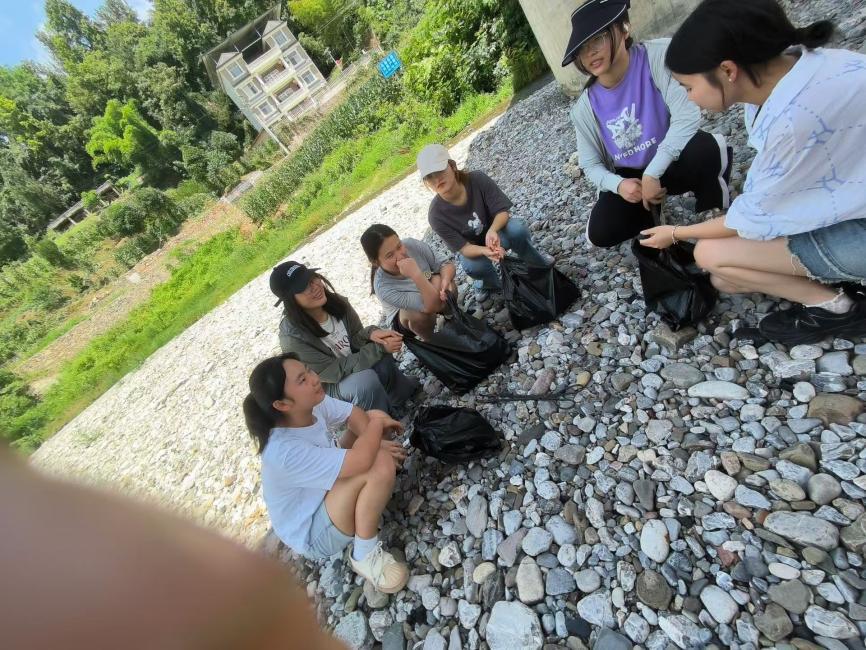 在实践操作中,队员们展现出高度的责任感与使命感。他们细致入微地清理了河道两侧的垃圾,包括石头上的矿泉水瓶、散落的零食袋等,确保每一处细节都不放过。在村民的协助下,还成功清除了河道中的部分杂草,有效缓解了泥沙淤积问题,为改善河道水质、恢复生态平衡贡献了力量。