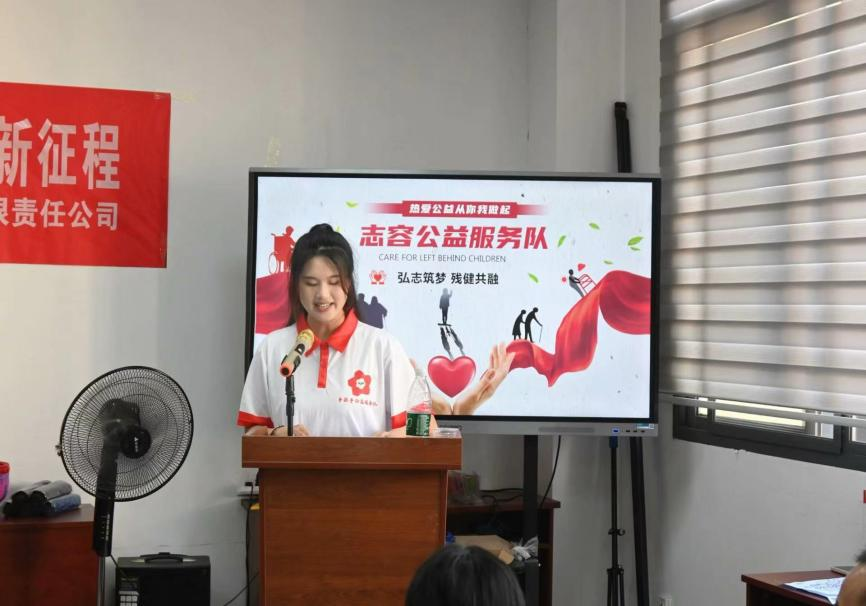发言环节,服务队队长发出了“希望通过大学生群体自身的力量,让社会各界了解关注到残疾人群体,教会他们生存技能,提供就业岗位,让他们更好的融入社会。”的希冀。
