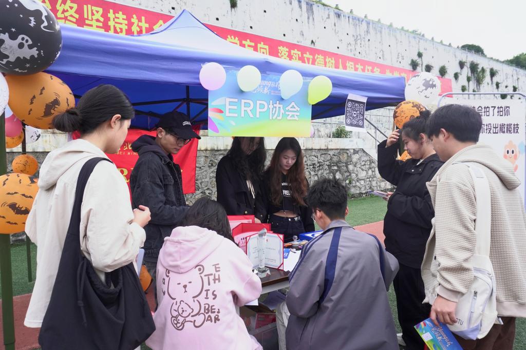 10月26日,36365官网在民族体育场举行以“百young‘社’彩,一见倾‘新’”为主题的2024年社团招新活动。校团委书记吴珊,校团委副书记彭弥,校团委社团管理部指导老师张典应邀出席本次活动。