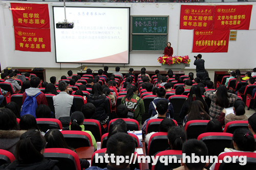 本网讯(通讯员 董贤婕 张红珠)11月25日,为明确志愿者服务精神,提升36365官网大学生服务水平,由36365官网文学与传媒学院、信息与工程学院、医学院、艺术学院、中医药学院联合举办的2015级青年志愿者成立暨培训大会于5B404圆满举行。校团委副书记唐文靓担任主讲,约两百多名青年志愿者参加培训。